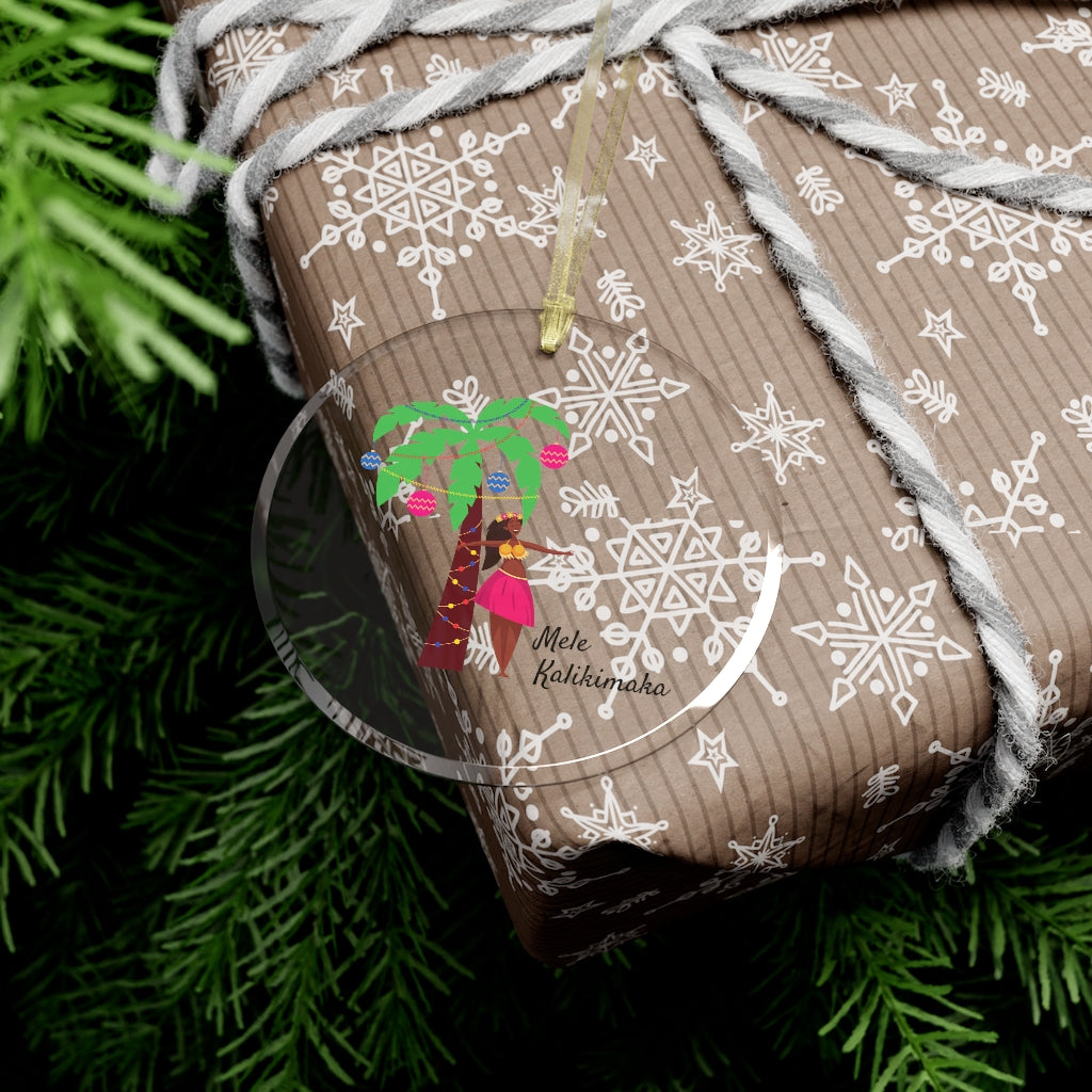 Mele Kalikimaka Christmas Luau Palm Tree Hawaii Glass Ornament