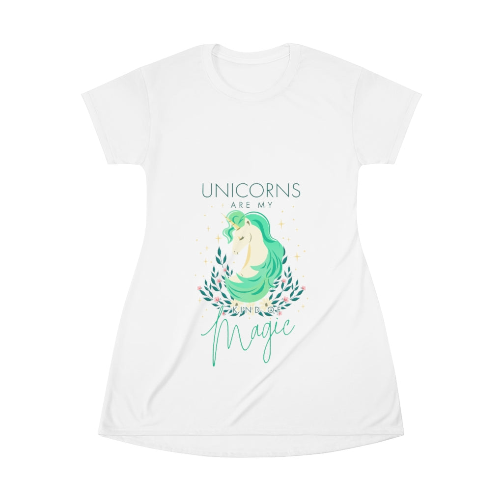 Do you love unicorns? If so, this T-Shirt Dress will be perfect for you! You can wear it as it is, or pair it with a cardigan or blazer to achieve a more casual look. They are great as gifts, too!